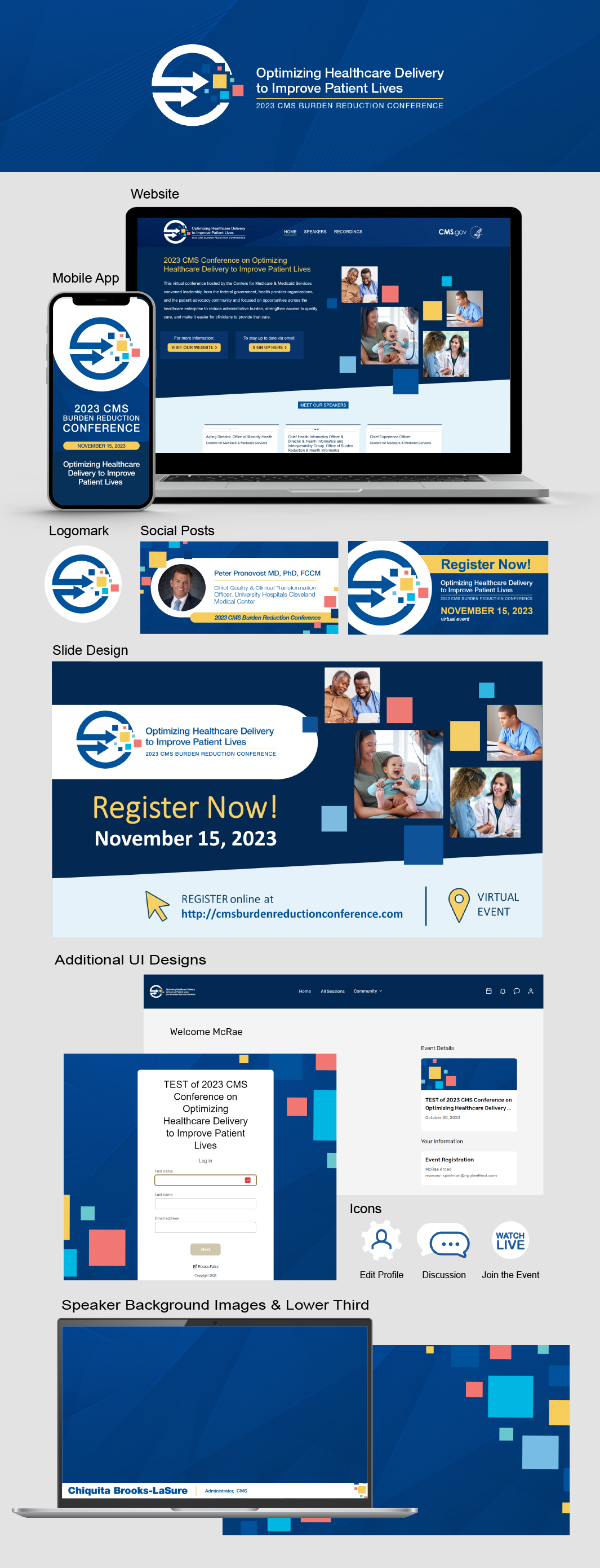 CMS hosted the inaugural Burden Reduction Conference in 2023. It was a virtual event that I developed branding and event materials for. Check out some of the materials below!